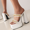 These sandals have a square toe and a high heel and are crafted from high-quality PU material.